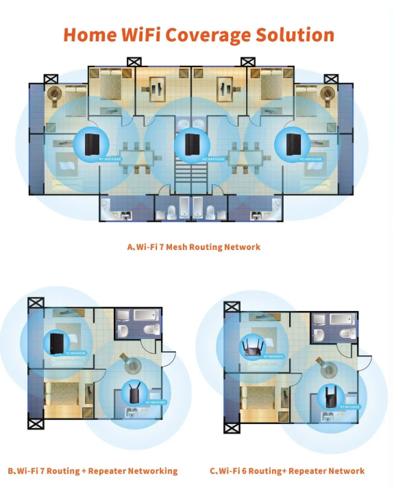 搭載全新一代 Wi-Fi7,加速未來連接,深度開發(fā)Wi-Fi合技術(shù),拓寬應(yīng)用邊界,構(gòu)建智慧家庭。